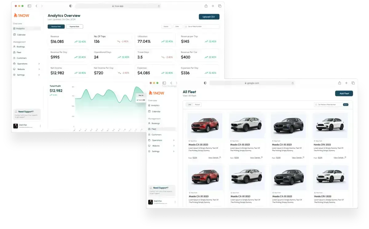 Yes. One of our clients made over $18,000 in direct bookings using just their 1Now website, CRM tools, and renter follow-ups. Here’s how it adds up: save $25 in fees per trip × 5 cars × 12 days per month × 12 months = $18,000/year. You also get a Profit per Car Dashboard that shows revenue, ROI, and renter activity — so you can grow your income with visibility and control.